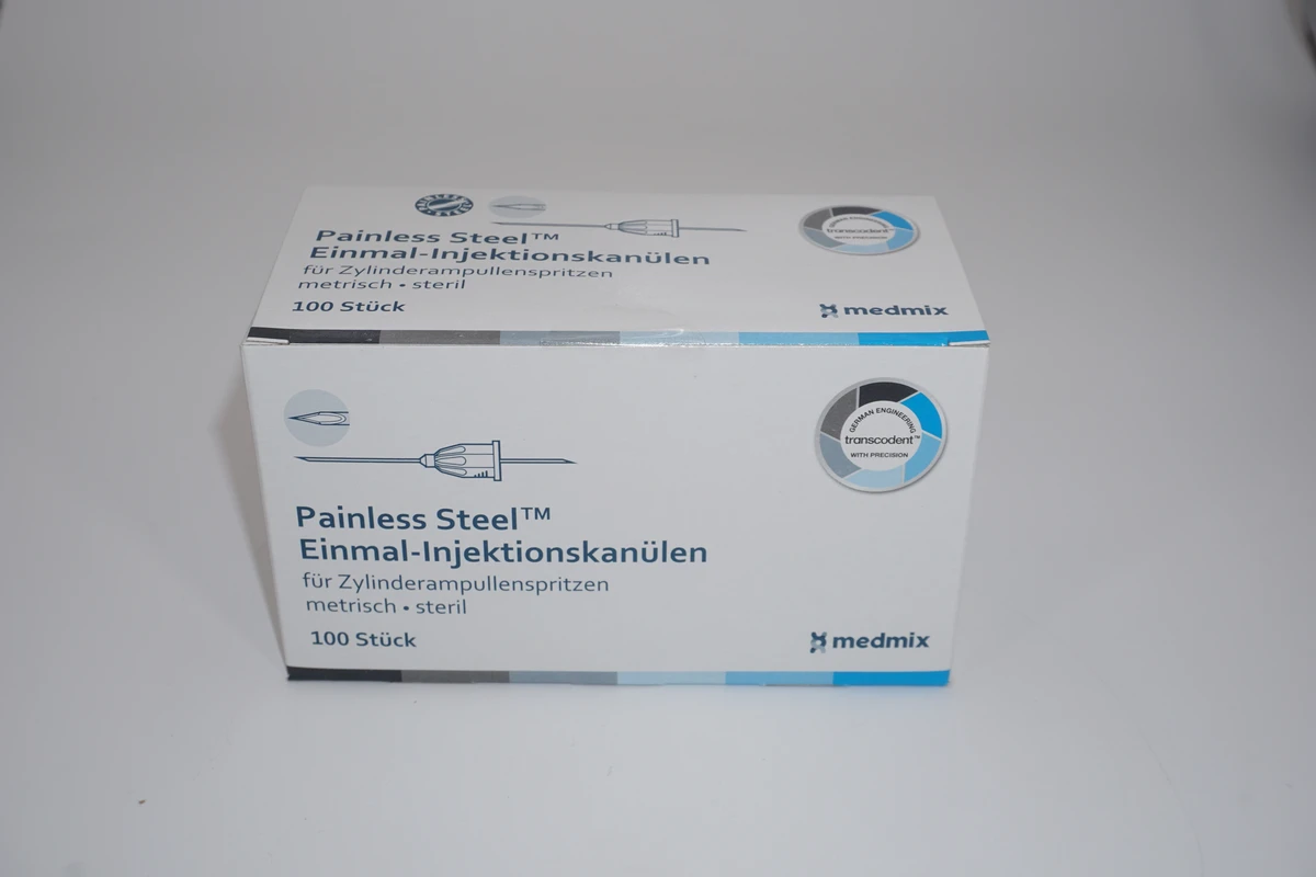 Sanfte Injektionen: Die transcodent™ Painless Steel™ Einmal-Injektionskanülen wurden speziell für die atraumatische Injektion entwickelt. Dank silikonisierter Oberfläche und 3-Kanten-Lanzettenschliff ermöglichen sie eine schmerzarme und präzise Lokalanästhesie – für maximalen Patientenkomfort.