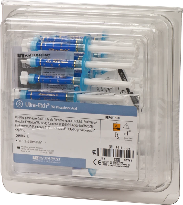 Ätzgel für Schmelz und Dentin, visköse 35 %ige Phosphorsäure. Einziges Ätzgel mit Selbstlimitierung zur Erreichung einer konstanten Ätztiefe im Dentin, daher praktisch keine Sensibilitäten nach dem Bonden. Optimale Konsistenz, gezielte Applikation mit dem Blue Micro Tip oder dem Inspiral Brush Tip.