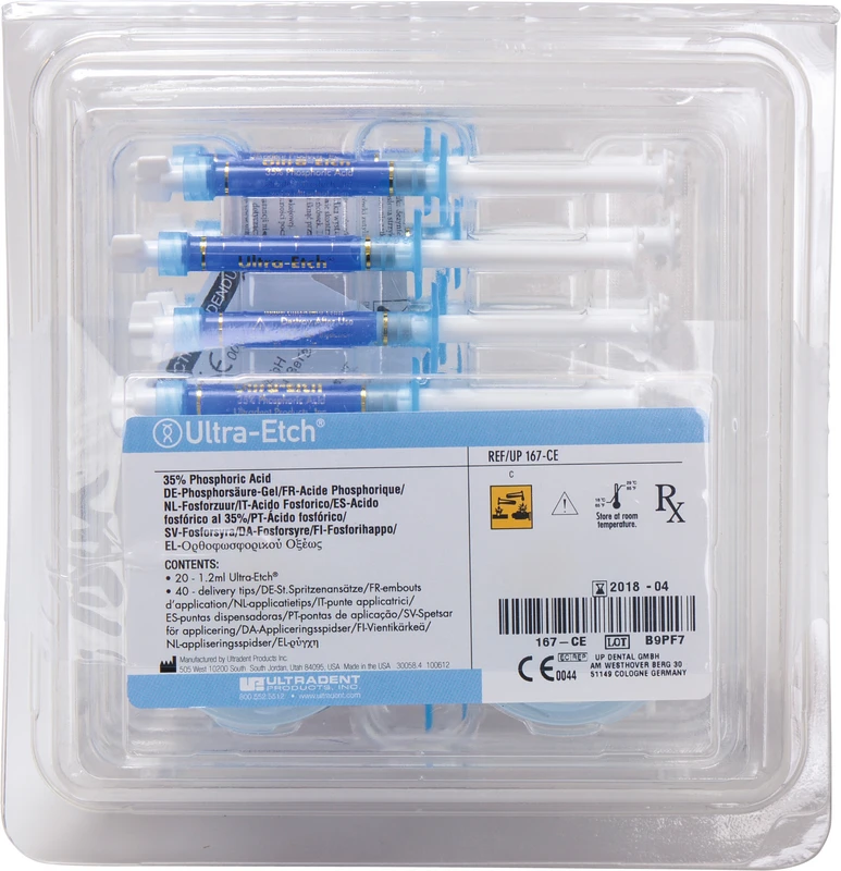 Ätzgel für Schmelz und Dentin, visköse 35 %ige Phosphorsäure. Einziges Ätzgel mit Selbstlimitierung zur Erreichung einer konstanten Ätztiefe im Dentin, daher praktisch keine Sensibilitäten nach dem Bonden. Optimale Konsistenz, gezielte Applikation mit dem Blue Micro Tip oder dem Inspiral Brush Tip.