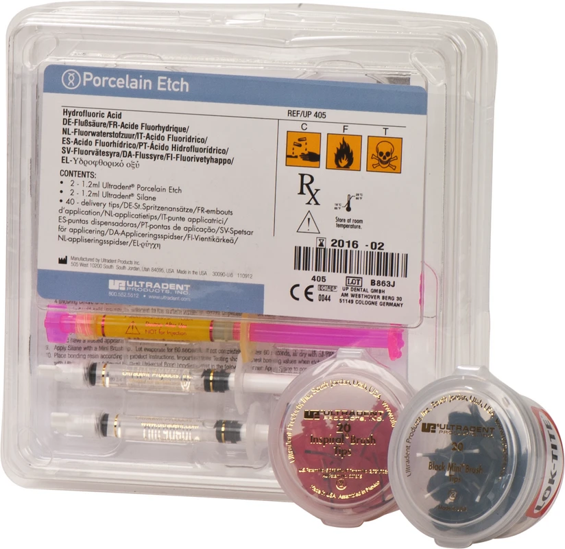 Ultradent™ Porcelain Etch ist ein 9 %iges, gepuffertes Flusssäure-Gel zum Anätzen von Keramik und makrogefüllten Kompositen.