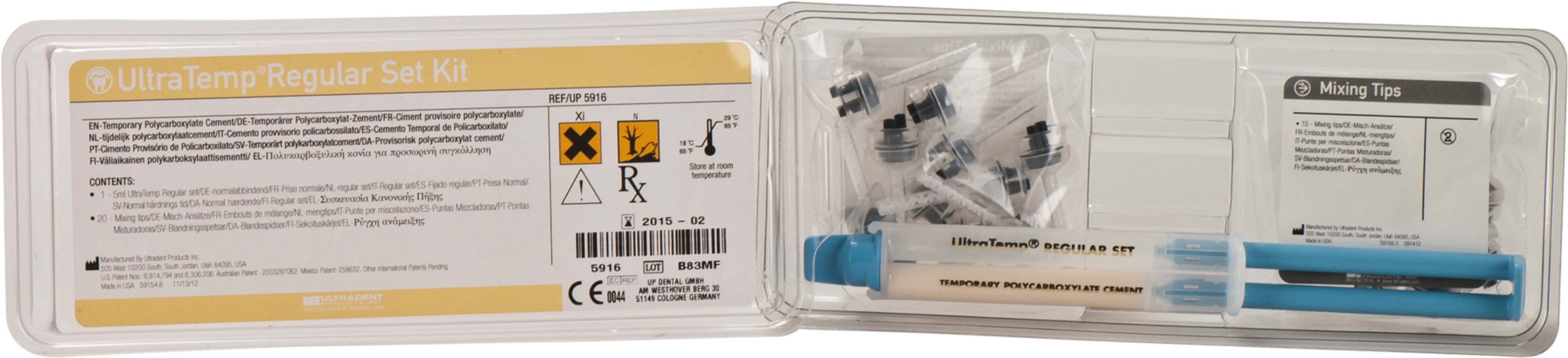 Provisorischer Befestigungs- und Füllungszement auf Polycarboxylat-Basis, eugenolfrei, hydrophil, besonders pulpenfreundlich. Optimale Versiegelung nach dem Aushärten. Entnahme aus praktischer Doppelspritze. Widerstandsfähig gegenüber normalen Biss- und Kaukräften.