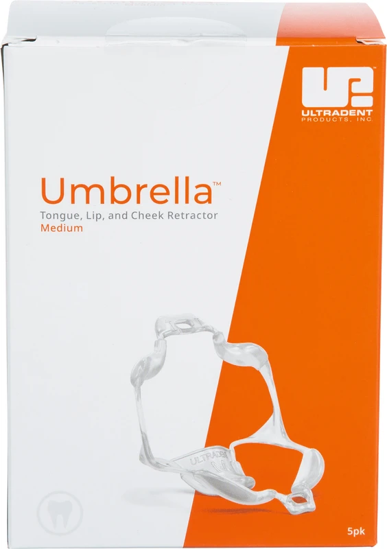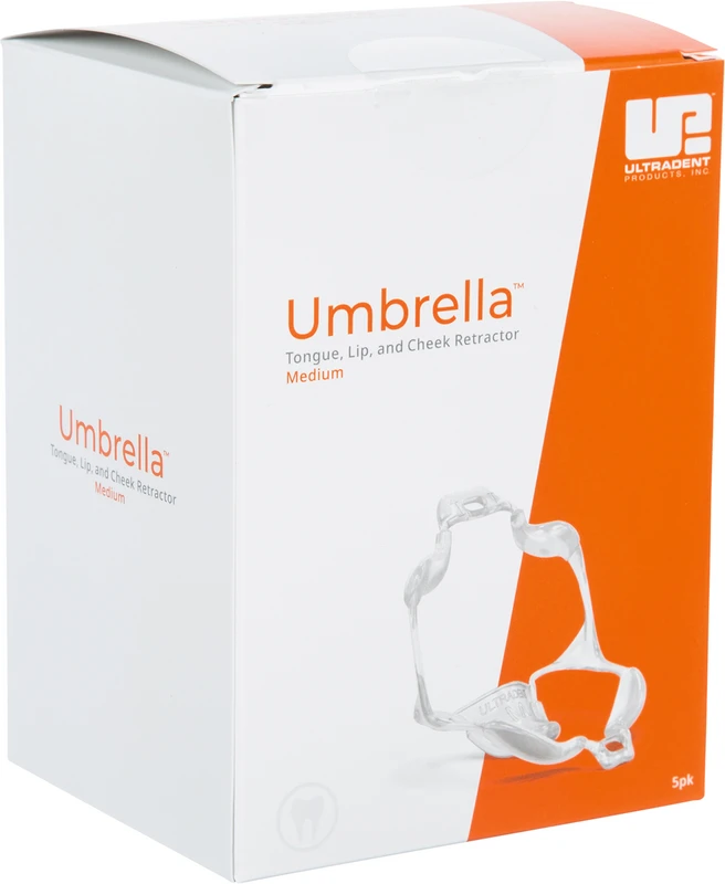 KOMFORTABEL: OPTIMALER ZUGANG UND PRAKTISCHE ISOLATIONDer Umbrella™ Zungen-, Lippen- und Wangenhalter weit mehr als die bloße Retraktion von Weichgewebe.Federunterstützung für eine sanfte, natürliche Öffnung des Mundes ganz ohne Ziehen oder Dehnen der Lippen und Wangen – besonders für Angstpatienten ein unschlagbarer VorteilInnovatives Zungenhalterkonzept: hält die Zunge bequem und zuverlässig zurückSpeichelkanalisierung außerhalb des Zahnbogens: verbesserter Zugang für AbsauginstrumenteKein Verursachen von Würgereizen bei den meisten PatientenAnatomisch geformte Halter: Handablage ohne Beeinträchtigung des PatientenkomfortsEinfache Positionierung im MundBleibt auch bei einer Bisskontrolle zuverlässig in-sit (alternative Anwendung mit Aufbissblock)Hygienisches EinwegproduktFür zahlreiche Indikationen geeignet Inhalt 5 Halter