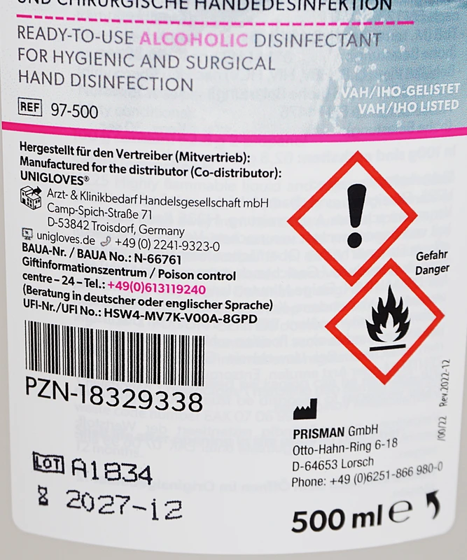 Produktinformationen "UNIGLOVES Händedesinfektion Flasche 500 ml"