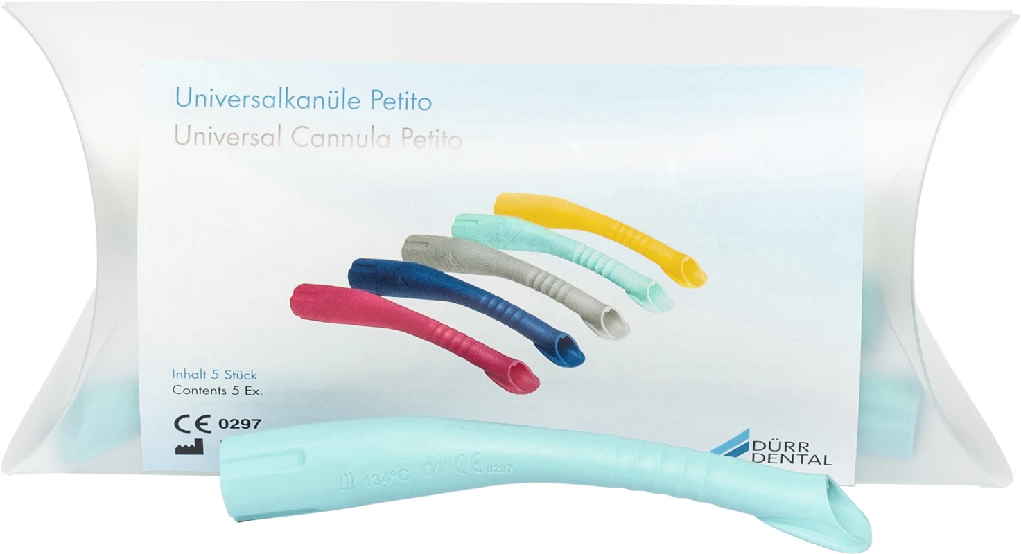 Universalkanülen Petito sind hochfunktionale Kanülen für Kinder, die eine ergonomische Behandlung ermöglichen. Die Universalkanüle Petito ist kleiner als die Universalkanüle und sorgt mit den Protect-Nebenlufteinlässen für bestmöglichen Schutz vor Reflux aus dem Saugsystem.