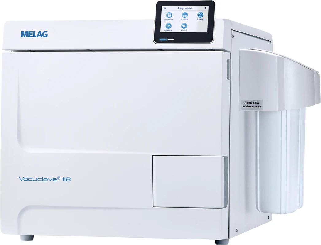 Autoklav der MELAG Pro Line: Vacuclave 118 (inkl. USB-Stick) Die meistverkauften Autoklaven der Welt: Jetzt FAIRbessert! Sie kennen die weltweit meistverkauften Autoklaven der MELAG Profi-Klasse? Dann werden Sie die neue MELAG Geräte-Generation lieben - von den Funktionen bis zum Preis! Denn das preisgünstige Einstiegsmodell der Pro Line überzeugt auf ganzer Linie: Mit smarten Bedien- und Dokumentationskonzepten sowie einem Kammervolumen von 17 Litern bietet Vacuclave 118 alles für die sichere, komfortable und ressourcenschonende Sterilisation Ihrer Instrumente. Und das alles in der MELAG Qualität, die Sie von den bewährten Vorgänger-Modellen kennen und schätzen. Denn ein Autoklav darf niemals ausfallen. MELAG Medizintechnik geht deshalb bei der Qualität keine Kompromisse ein und entwickelt, produziert und optimiert seit 1951 unter höchsten Qualitätsanforderungen am Firmensitz in Berlin. Der neue MELAG Autoklav Vacuclave 118 – hat mehr drauf, als er kostet: