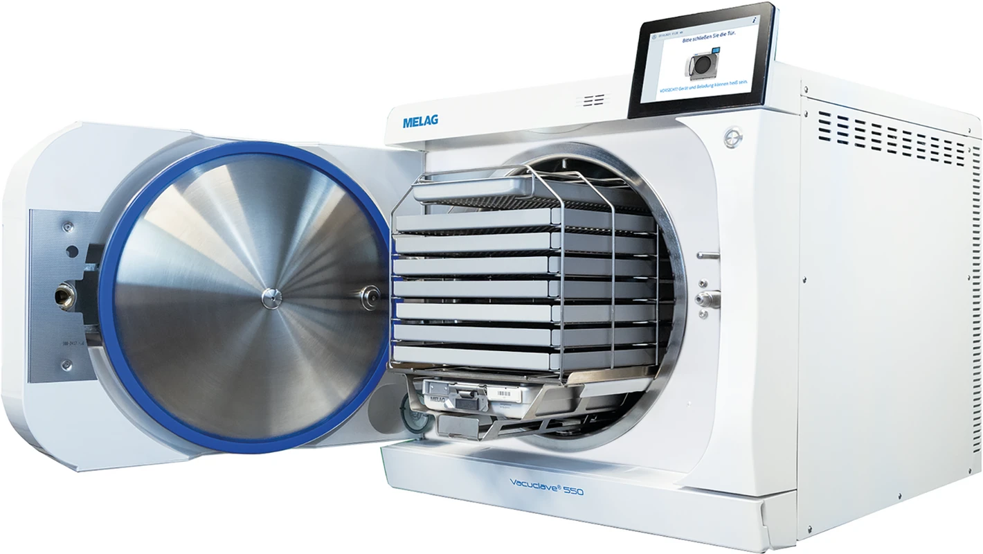 Gemacht für Großes: Der große Klein-Autoklav mit 50 Liter.Vacuclave 550 überzeugt mit einer extragroßen Kammer für bis zu 25 kg Beladung und 16 Tabletts. Mit einer Kapazität von 50 Litern, bietet Vacuclave 550 im Vergleich zu zwei alternativen Klein-Autoklaven deutlich mehr Kapazität bei 40 % geringerer Aufstellfläche. So sterilisieren Sie auf minimalem Platz die maximale Anzahl an Instrumenten in Rekordzeit und sparen zusätzlich mit wegweisenden Innovationen noch viel Geld: Denn Sie reduzieren mit den patentierten Recovery, Coolify und Power Save Technologien Ihren Strom- und Wasser-Verbrauch im Praxisbetrieb erheblich.