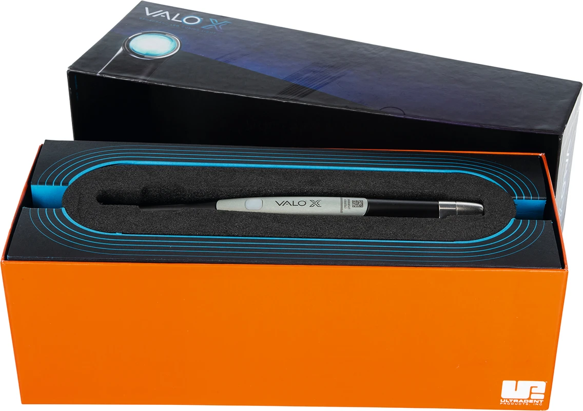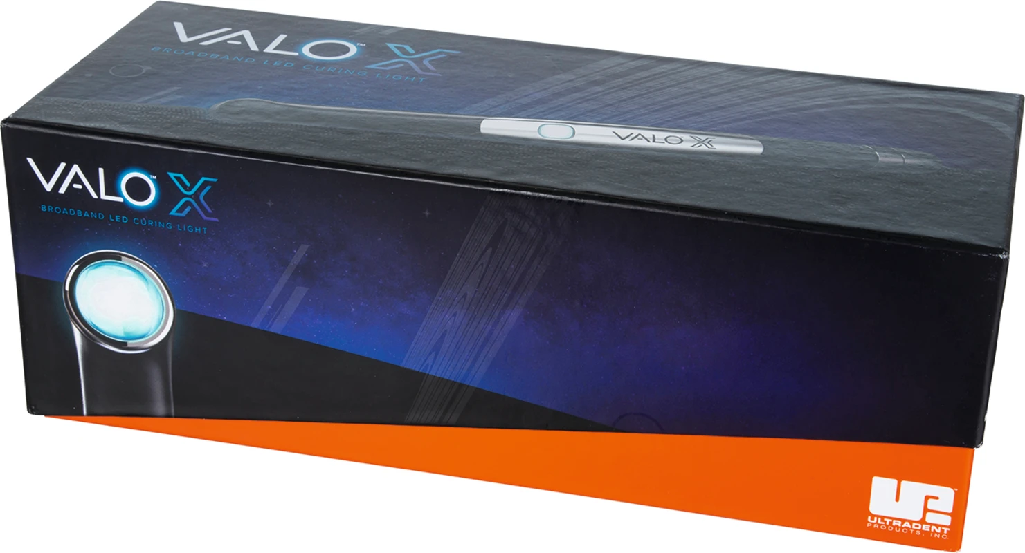 Die innovative VALO™ X Polymerisationsleuchte gewährleistet eine vollständige und gleichmäßige Aushärtung aller lichthärtenden Materialen in jedem Behandlungsbereich. So wird das Risiko kostspieliger Nachbehandlungen für Anwender und Patienten minimiert. Die VALO™ X kombiniert die erforderliche Langlebigkeit mit Leistungsfähigkeit, Zugänglichkeit und Vielseitigkeit. Die Aluminiumkonstruktion aus der Luft- und Raumfahrttechnik ist extrem langlebig. Das flache, kompakte und ergonomische Design ermöglicht optimalen Zugang zu allen Bereichen des Mundes ohne den Behandlungskomfort von Patienten oder Anwender zu beeinträchtigen. Das Vermeiden kostspieliger Nachbehandlungen ist sowohl für Anwender als auch für Patienten essenziell. Die VALO™ X Polymerisationsleuchte gewährleistet eine besonders zuverlässige und vollständige Aushärtung. Die 12,5 mm große Linse und der speziell entwickelte LED-Chip sorgen für eine herausragende Aushärtungstiefe, Kollimation des Strahls sowie für ein verbessertes Temperaturmanagement. Die VALO™ X Polmyerisationsleuchte verfügt über zwei Leistungsmodi (Standard Power und Xtra Power), zwei Diagnosemodi (Schwarz- und Weißlicht). Darüber hinaus kann sie sowohl kabelgebunden als auch kabellos eingesetzt werden. Das reduzierte Design ermöglicht die Aktivierung per Knopfdruck. Der integrierte Beschleunigungssensor gewährleistet einen schnellen Wechsel zwischen den Polymerisations- und Diagnosemodi durch einfache Handbewegungen. Umständliche Bedienschritte während der Behandlung werden reduziert und das Risiko des Herunterfallens verringert. Anwender können sich voll und ganz auf die Behandlung konzentrieren.