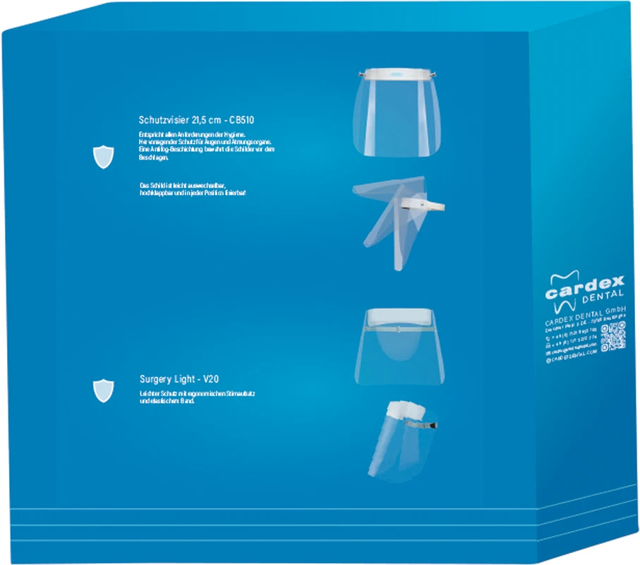 Leichter Einmal-Schutz mit ergonomischen Stirnaufsatz und elastischem Band.