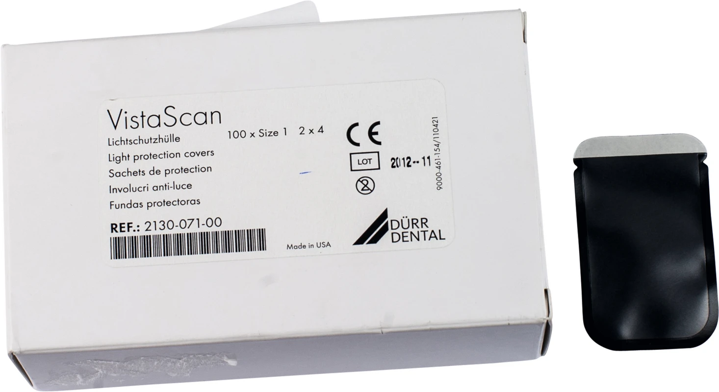 Lichtschutzhüllen für VistaScan für Dürr Speicherfolien. Selbstklebende Hülle schützt vor Lichteinfall und Kontamination.