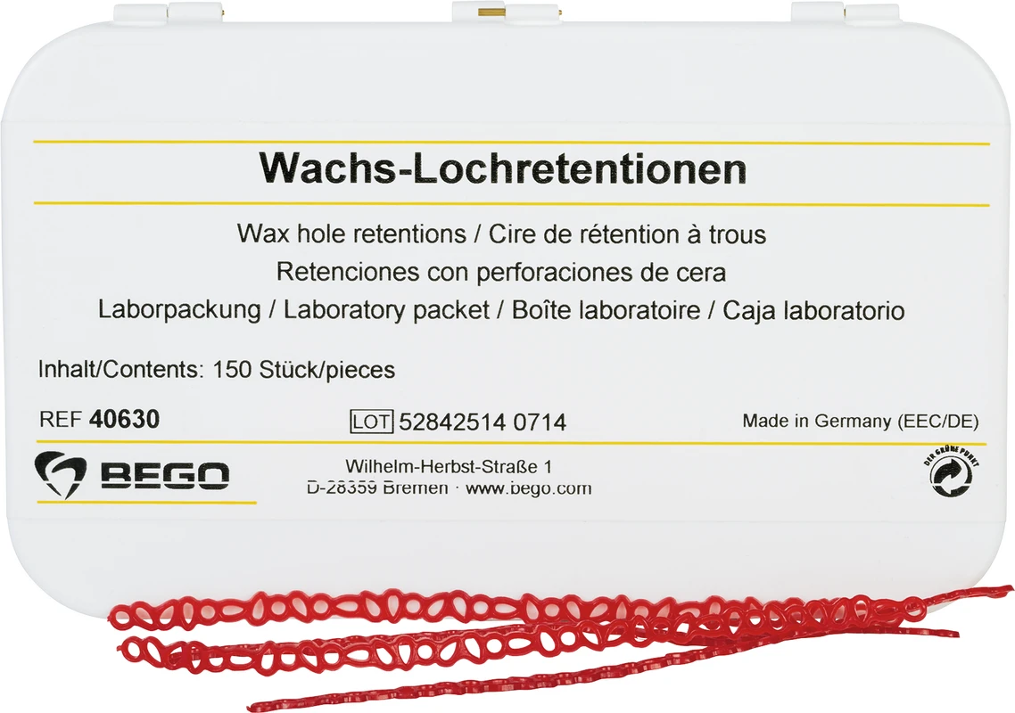 Produktinformationen "Wachs-Lochretentionen Laborpackung 150 Lochretentionen rot"