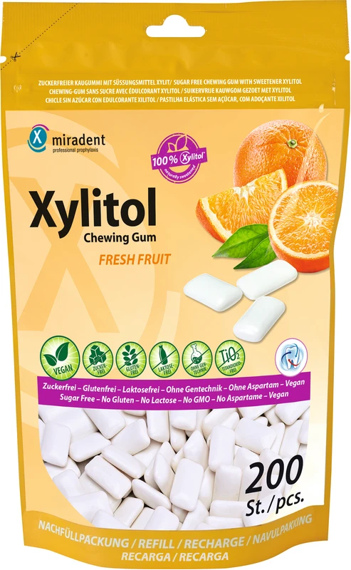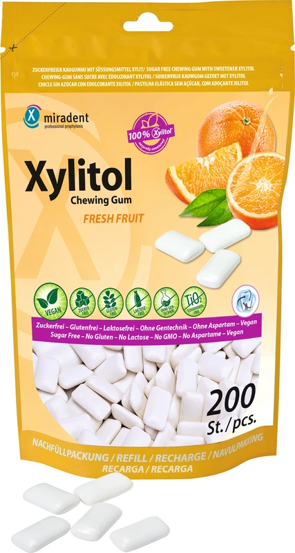 Produktinformationen "Xylitol Chewing Gum Refill Packung 200 Stück Fresh Fruit"